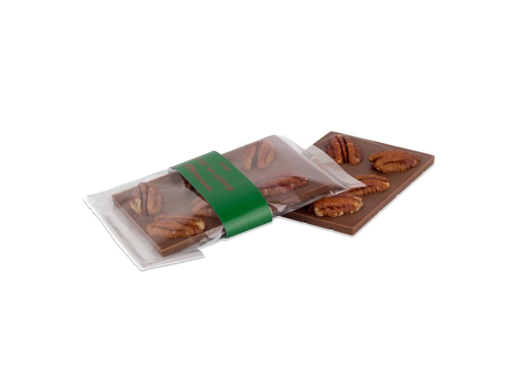 Mléčná čokoláda s vysokým obsahem kakaové hmoty a pekanovými ořechy nejde nesníst najednou. Ještě, že ta naše váží jen 40 g, takže se nemusíte cítit provinile, kdyby vám to náhodou ujelo.