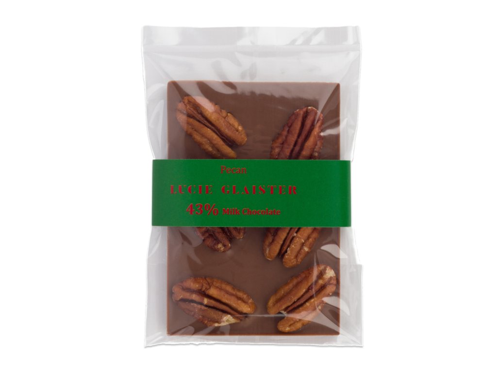 Složení: kakaová hmota 43%, kakaové máslo, sušené mléko, pekanové ořechy, cukr, emulgátor sójový lecitin, aroma: přírodní vanilka